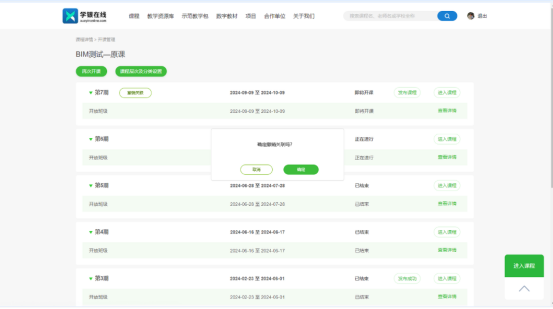 ①激活课程 ②进学银再次开课 ③关联教务系统开设课程 ④完成开课