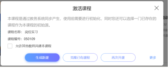 第一步:从泛雅平台登陆,激活教务系统对接的课程,激活时选择”克隆已有课程“,此处需克隆已有的学银课。(若区分不出来,在课程名称里标注后再克隆)